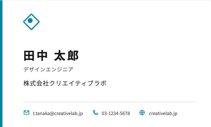 7 - 名前: 「田中 太郎」大きめ。役職「デザインエンジニア」は小さく